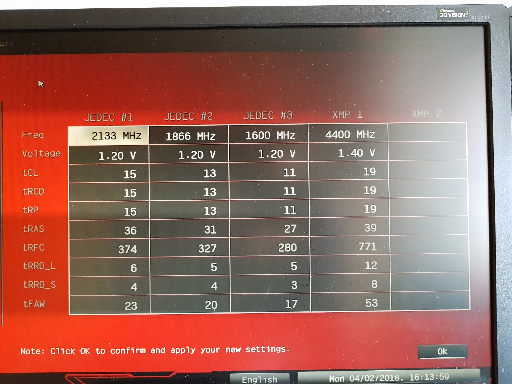 Tyhle RAMky mají výchozí napětí 1,4V. Při tomhle časování jsem ale na 1,4V ani nenabootoval, při 1,45V už jo, ale app crash,, hned jak jsem spustil hru. Na 1,5V se už dá normálně hrát a na první pohled se to zdá být ok, ale chtělo by to projet samozřejmě něčím náročnějším jako je memtest.