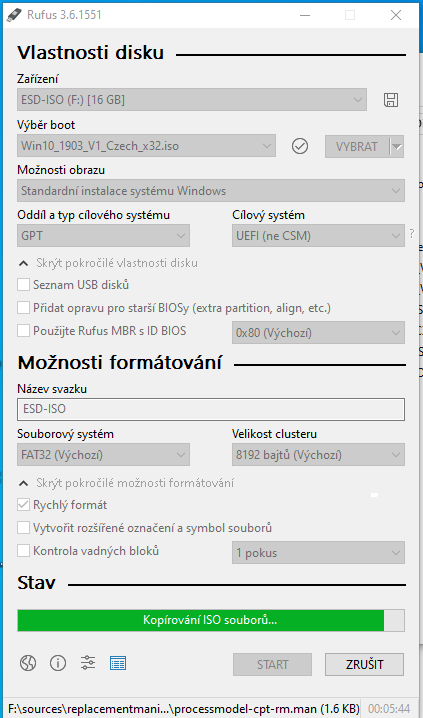 hm...díky za info...jinak jediná možnost je přeinstalovat tedy W10 64 bit co tam je na W10 32 bit.....ale když to Rufus provede na USB, tak nenaskočí při startu nic ani klávesou....ale 64 bit na USB naskočí ihned pokaždé..... to by znamenalo že tam 32 bit verze nepůjde což by mne dorazilo , tedkom mám na disku volných 4GB z 28 GB... při 64 bit v erzi.
