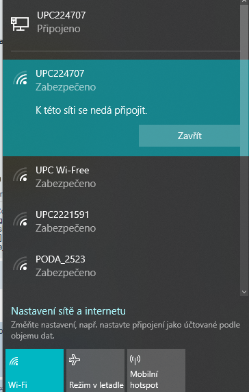 mám problém se sítí. Vždy když se chci připojit na Wi-fi tak mi vyskočí, že nelze připojit k síti. Zkoušel jsem to i s jinými Wifinami ale nikde se nepřipojí. Dosahem sítě to není. Přes kabel normálně jede. Můj notebook je HP 250 G3. Připojuji se přes Ralink RT3290 802.11bgn Wi-Fi Adapter #2. Díky za odpovědi :-)