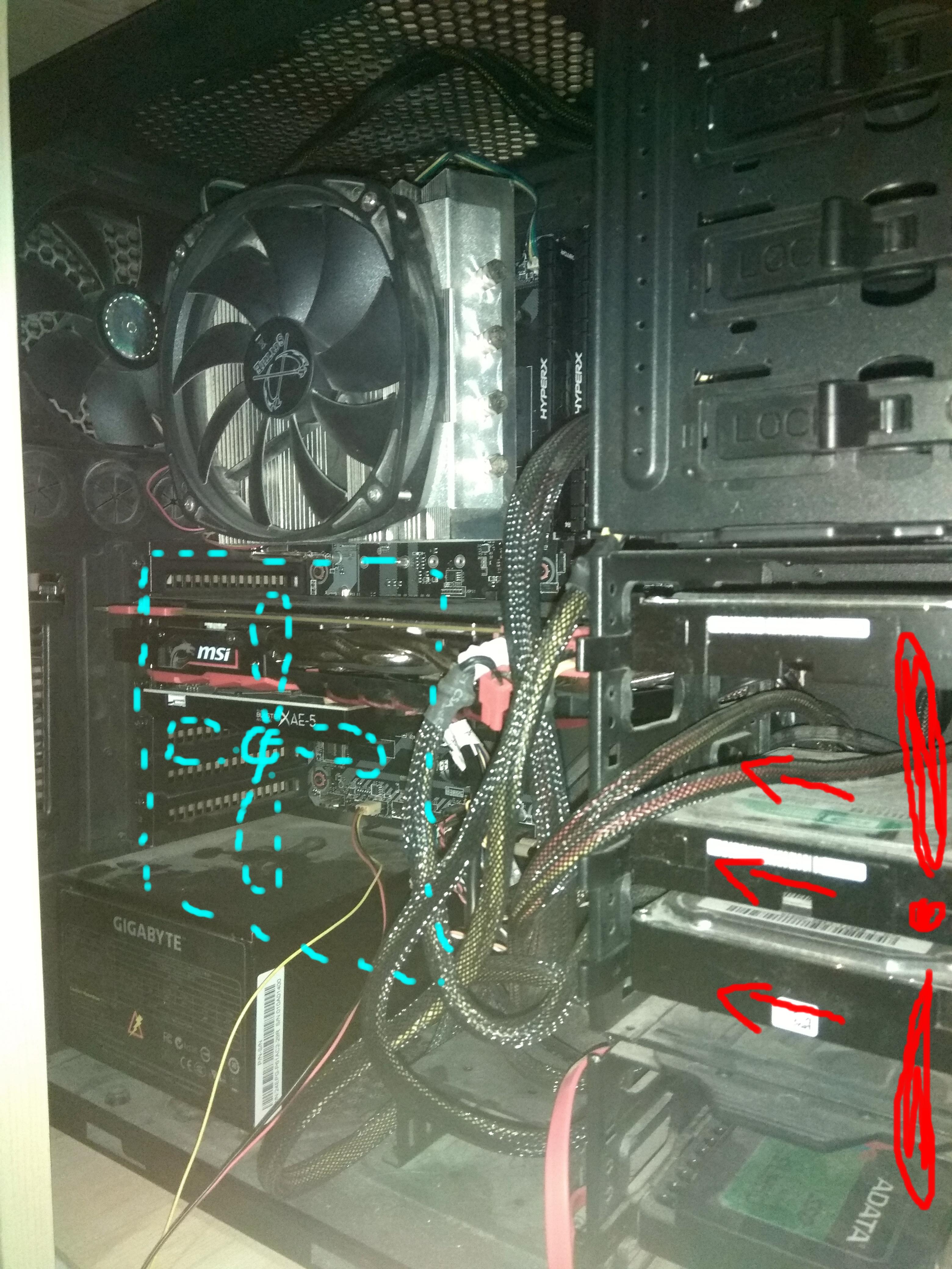 jj taky me to napadlo kdyz sem videl 1024x860..bohužel když jsem to kupoval neznal jsem teplotu oné grafiky.. takze me prislo 73 ok...jinak sem vyndal tu zvukovku a dal ji niz do pci-e 16x a jde to.zkusim pozorovat zda to nebude lepsi ale moc tomu nedavam...kazdopadne tu grafiku msi asi budu muset prepastovat..bude to hold horsi rozebirani a vice sroubku ma backplate..jinak foto me skrine..nemoh sem pc uplne vytahnout tak aspon nak pro predstavu..tzn vetrak nahore na zadni strane..uplne nahore jen mrizka na odvod tepla....teplo stoupa samovolne nahoru takze vetrak sem tam nedaval...pak dole vetrak z predu skrine pod mechanikama..cili fouka na HDD a pak bocni vetrak na bocnim krytu..myslim ze vetru je tam az az...Prepastovani muže snizit teplotu az o deset stupnu a pak by bylo vse jak ma byt..hold to necham na vikend.Prikladam nake foto skrine...ten dreveny kolicek mezi grafikou a zvukovkou je prasarna ok...ale lopatka mi trosicku skrtala o kartu takhle uz to bylo ok :)