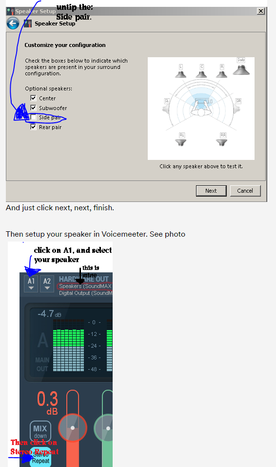 Včera večer jsem zkusil x návodů a různých aplikací, na konec se mi povedlo dostat zvuk do všech beden (ale asi jsem to "přemixoval těma appkama