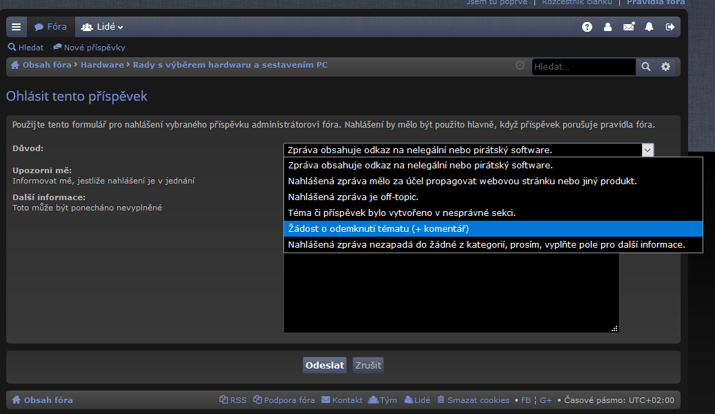 Já jen radu k tomu zamčení. Když se to stane, tak stačí klik na vpravo nahoře u příspěvku na vykřičník a pak viz příloha