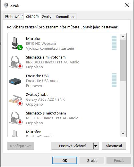 Divné je, že mikrofon v záznamu rozhovoru nahrává, posuvník se hýbe, ale ve skype, v messengeru nejsem slyšet. Takže to vypadá na sw problém. Ale nezjistil jsem kde a co udělat, aby ten zvuk prošel přes skype.