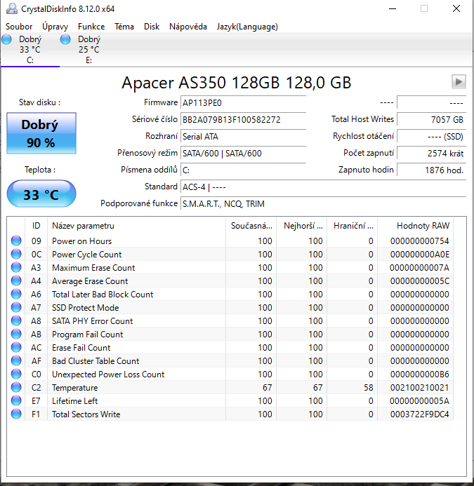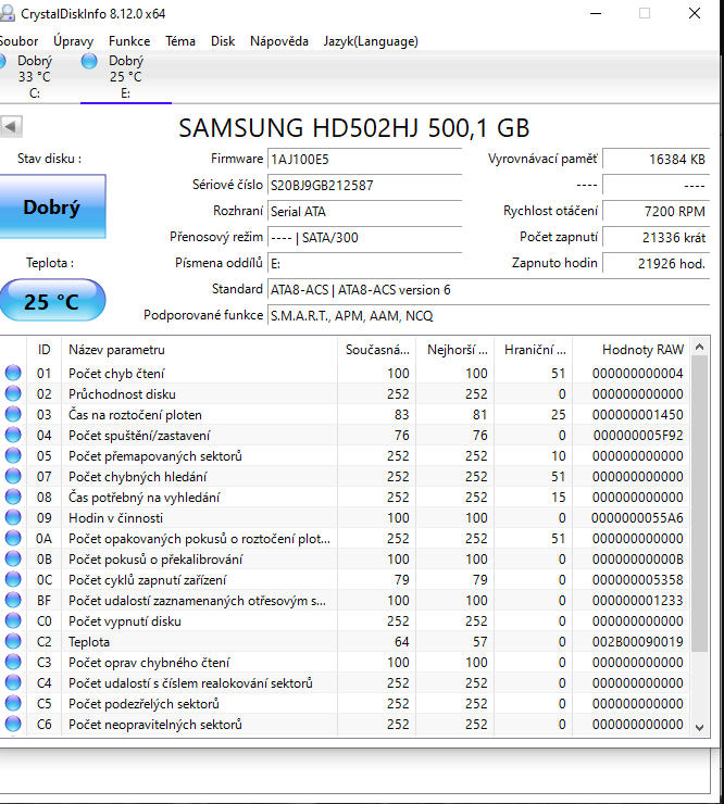 tro je HDD,tak mam ty disky v pořadku,SSD mam 2 roky A HDD asi 13 let a pořad jede,win mam na ssd,HDD na hry atd.,vydrži jeste HDD ne?děkuji za odpovšd