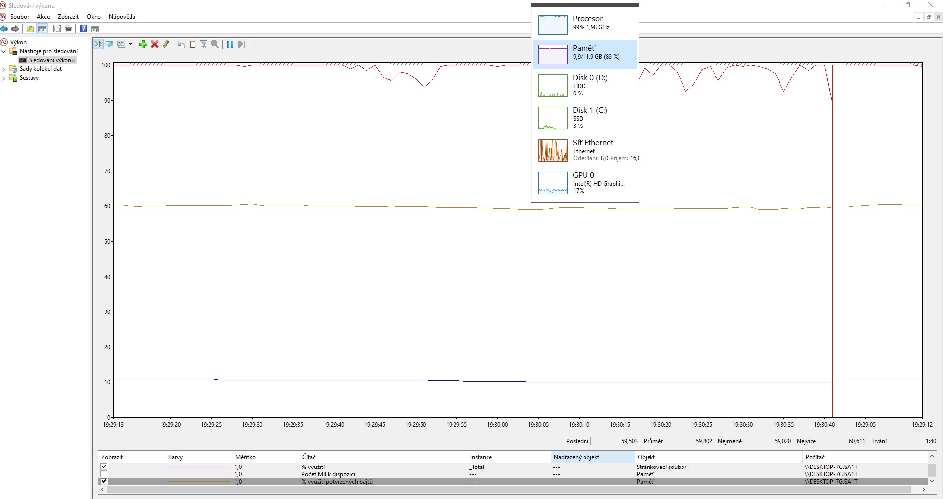 Navíc to vypadá že swapuje na HDD a ne na SSD (chtělo by to kouknout, kam je nastavené vytváření stránkovacího souboru)
