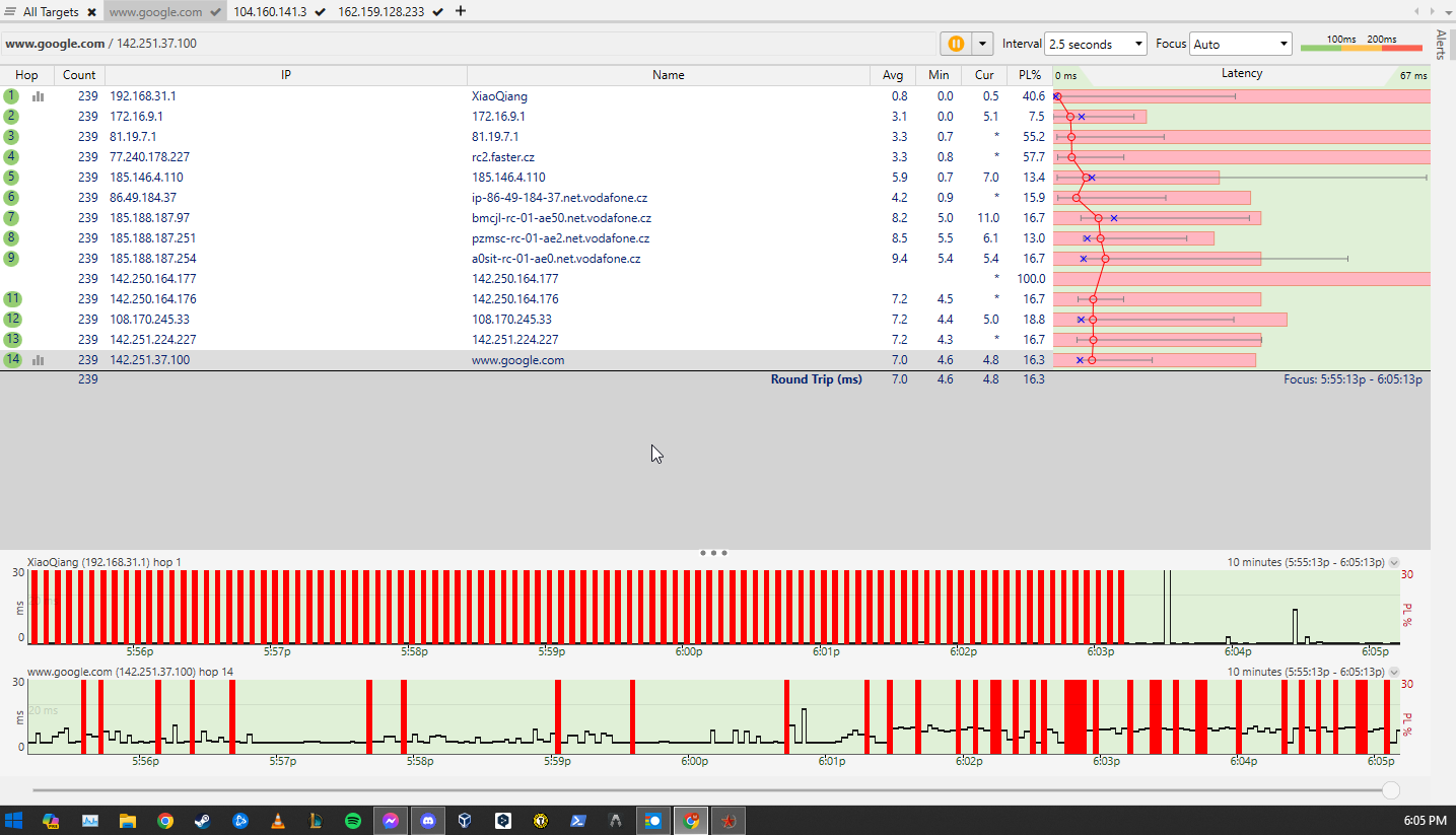 dal jsem tam nejake ip adresy z netu sice neoficialne LOL west server a nejaky discrod server ale nikde nevidim tak obrovske spiky internetu, muze to byt packetloss?