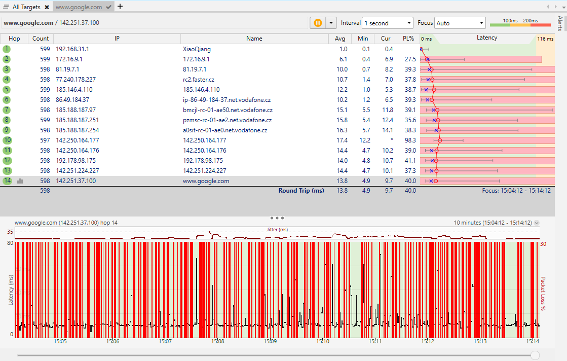 Poslední týden mam problém s častým velkym spikem pingu. Mám připojení do stolního PC přes kabel. Internet je od FasterCZ, a pokaždé když jsem měl já problém s připojením a volal jsem tam tak prý bylo vše OK, tudíž problém bude asi mezi rackem a mým PC, lze nějak zjistit co může tyto spiky vyvolávat a nějak ho monitorovat přes nějaky SW free? Prosím připadné dotazy asi jsem zde neuvedl vše co je potřeba ale nic mě nenapada aktulaně co více dodat. Děkuji