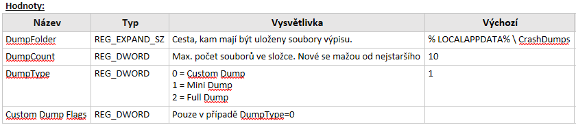 Můžeš si nechat vytvořit dump automaticky na aplikace, které padají. Je potřeba vytvořit klíč v registru:
