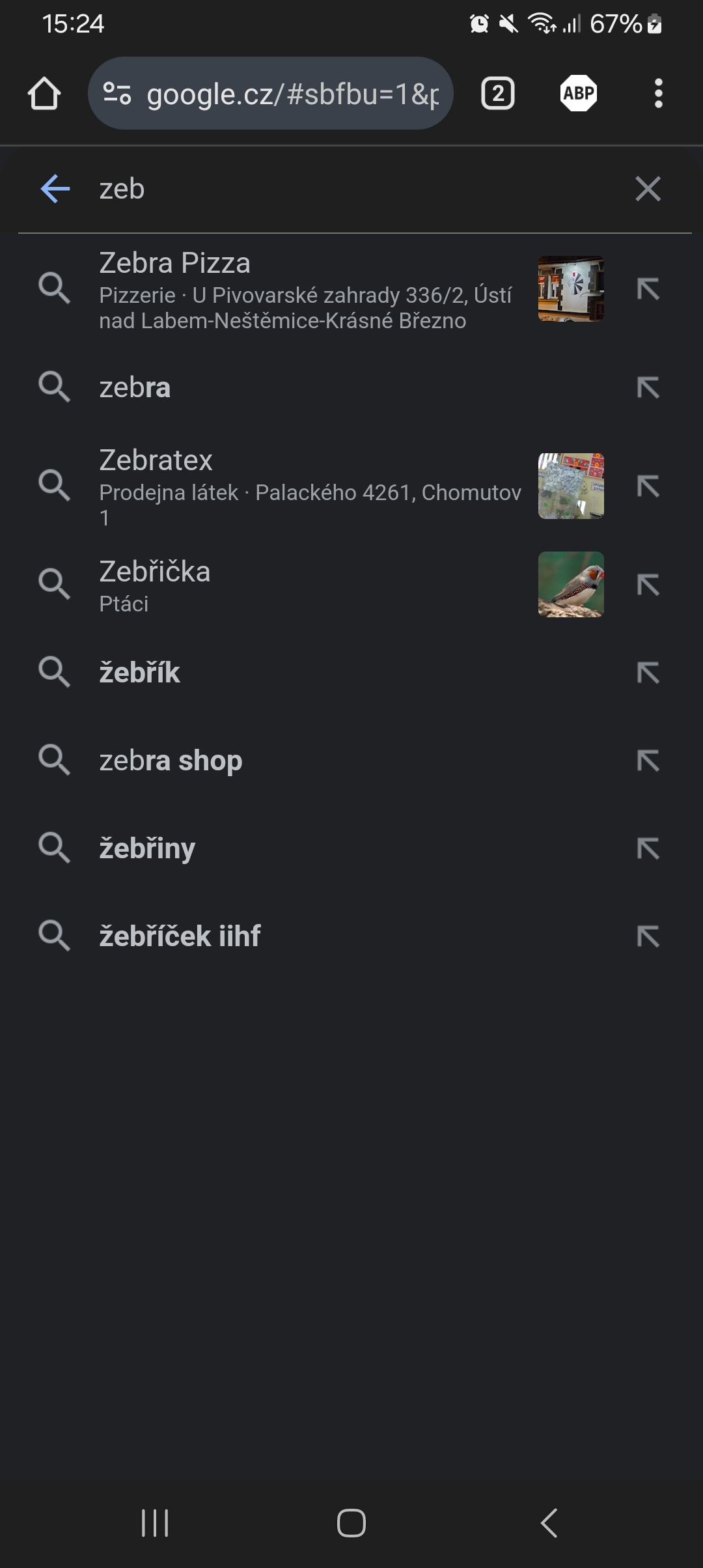 Objeví se zde zebraland (pizzerie v měste mimo) a dalši nesmyslné výsledky, poté to co hledáme.