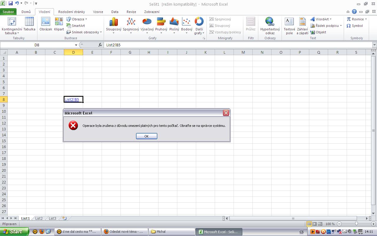 Prosím o radu ohledně hypertextového odkazu. Udělám-li klasický odkaz na buňku B5 druhého listu, tak nevím proč to nefunguje. Píše mi to hlášku, ale nevím jak na to. Možná dělám já něco špatně. Děkuji M.