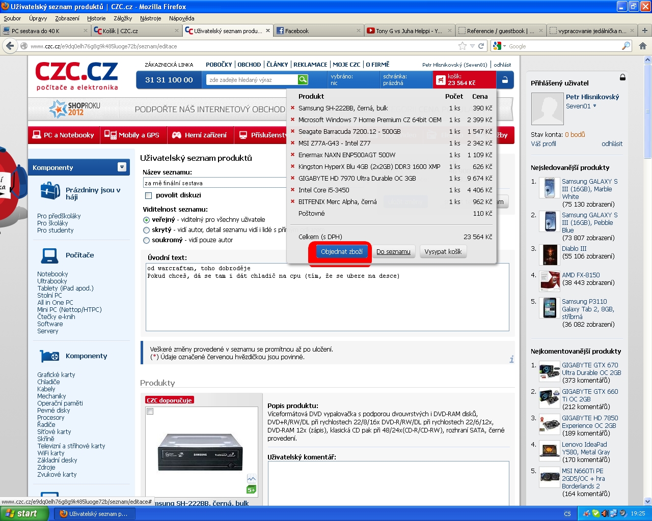 A ještě jednou zdar! Budu kupovat další PC sestavu, ale potřebuju poradit s výběrem komponentů, resp. jí celou tak nějak sestavit :) Díky
